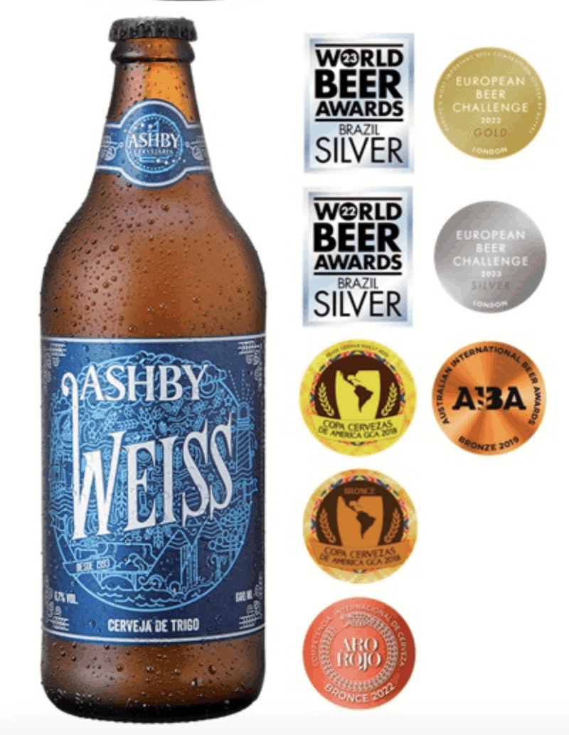 A Ashby Weiss é inspirada nas tradicionais cervejarias da região da Baviera, sul da Alemanha. Com coloração opaca, fruto da não filtragem, possui espuma cremosa e duradoura.
